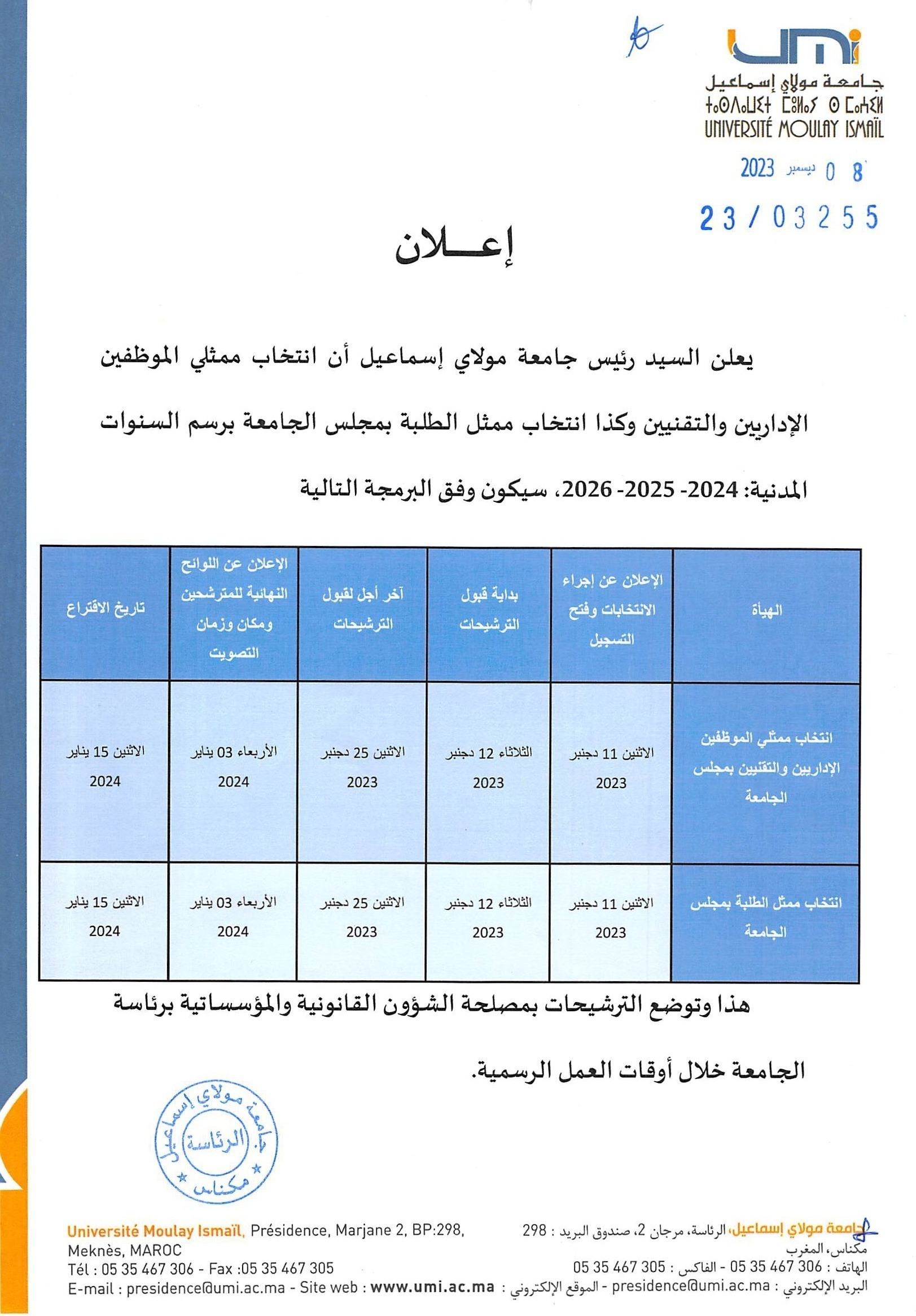 إعـــــــــــــــلان فتح باب الترشيح لتقلد مهام رؤساء الأقسام برئاسة جامعة مولاي إسماعيل بمكناس24 février 2021