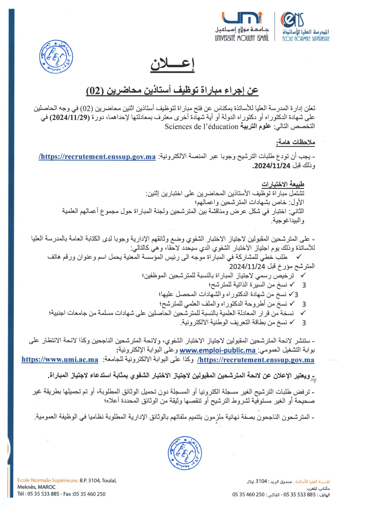 النتائج النهائية لمباراة توظيف أستاذ محاضر لفائدة الكلية المتعددة التخصصات بالرشيدية (منصب واحد ) – Génie Informatique : تخصص2 janvier 2025