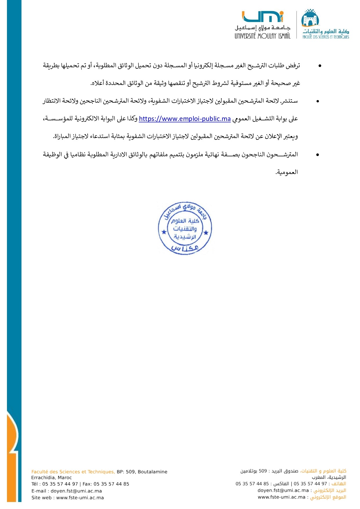 النتيجة النهائية لمباراة توظيف أستاذ محاضر لفائدة كلية العلوم والتقنيات بالرشيدية (منصب واحد) – BIOLOGIE : تخصص2 janvier 2025