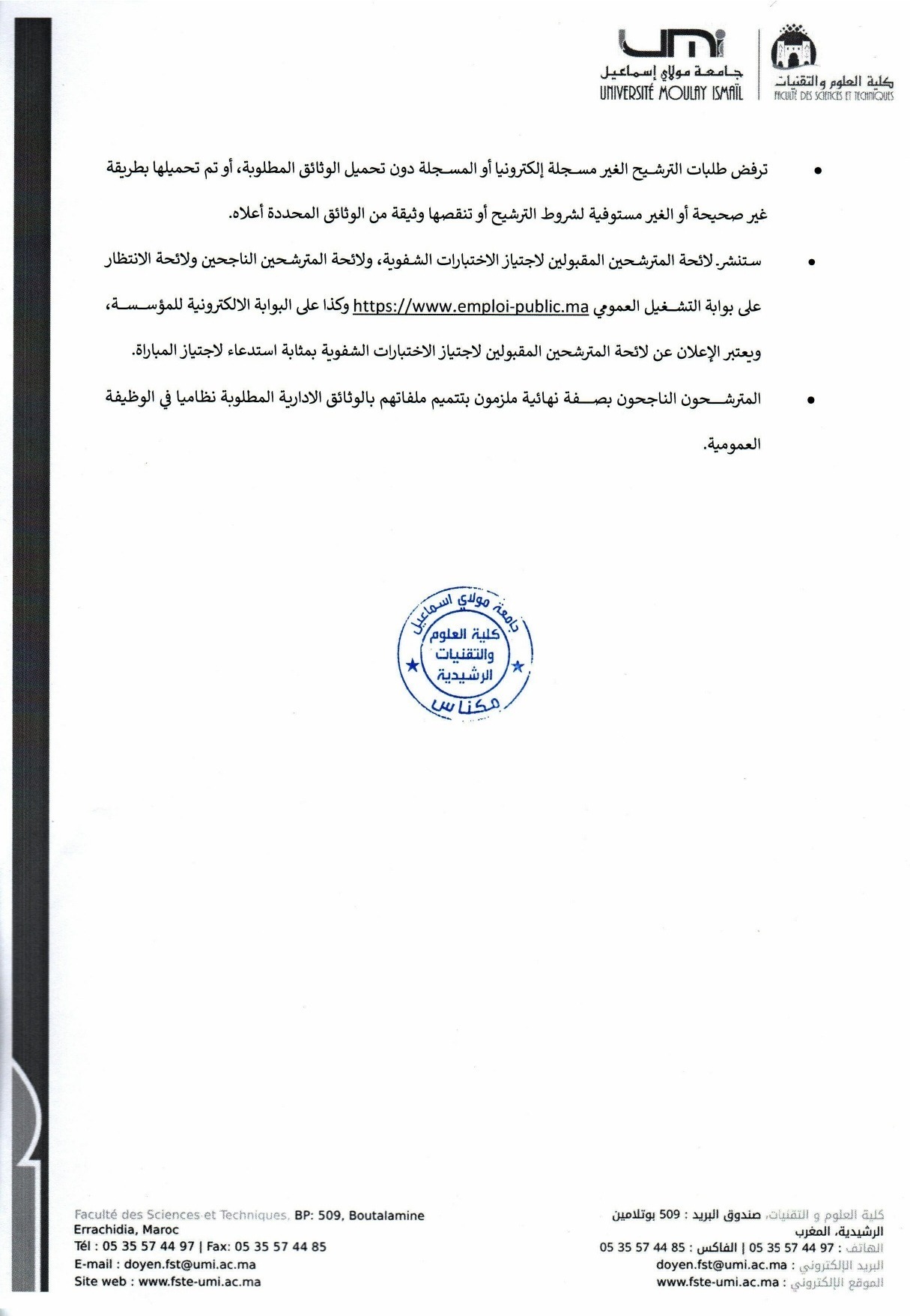 – Intelligence artificielle : النتيجة النهائية لمباراة توظيف أستاذ واحد محاضر بكلية العلوم القانونية والاقتصادية والاجتماعية بمكناس – تخصص24 décembre 2024