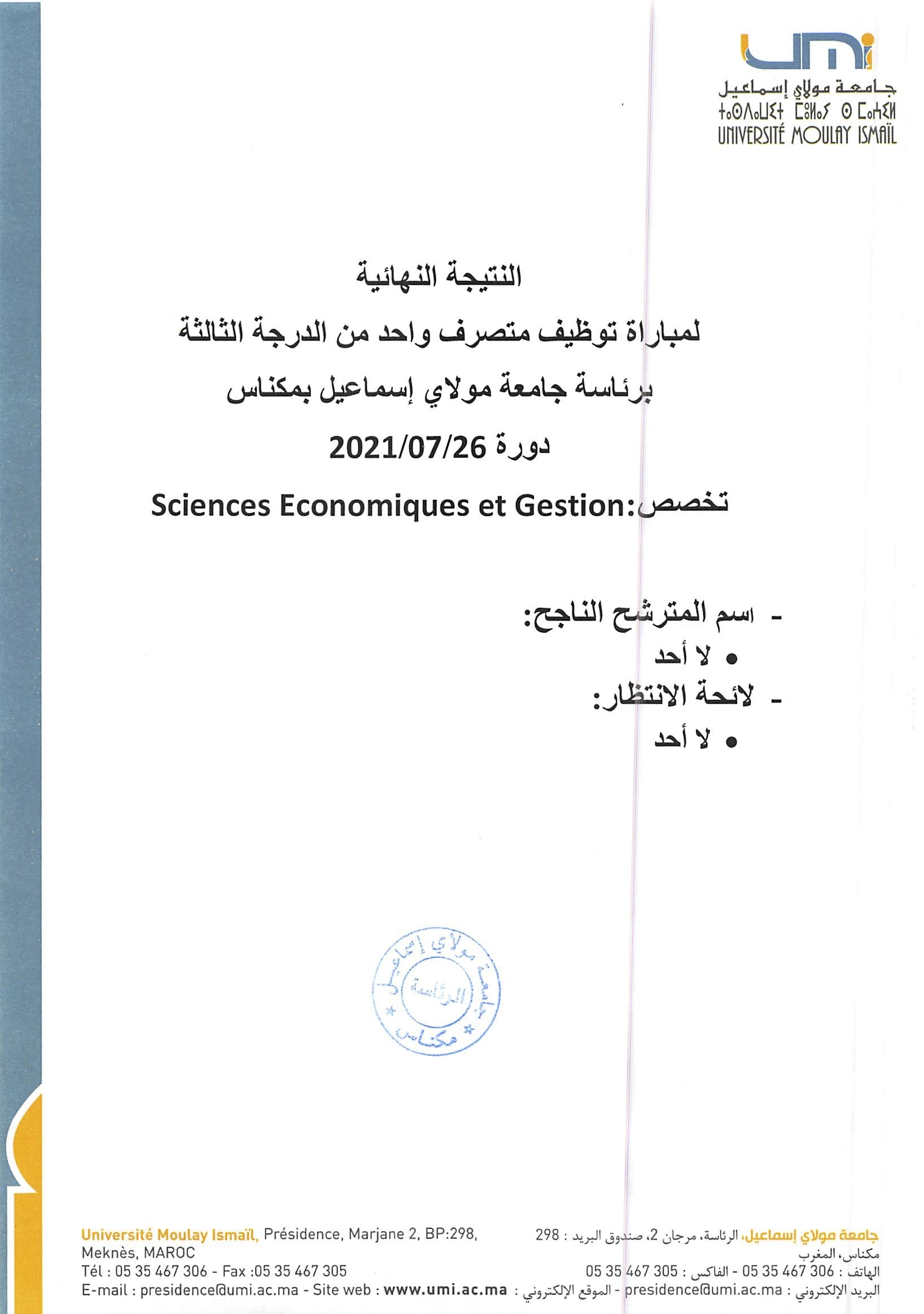 النتائج النهائية لمباراة توظيف أستاذ محاضر (منصب واحد:01) – تخصص : فلسفة التربية دورة 2024/11/0117 décembre 2024