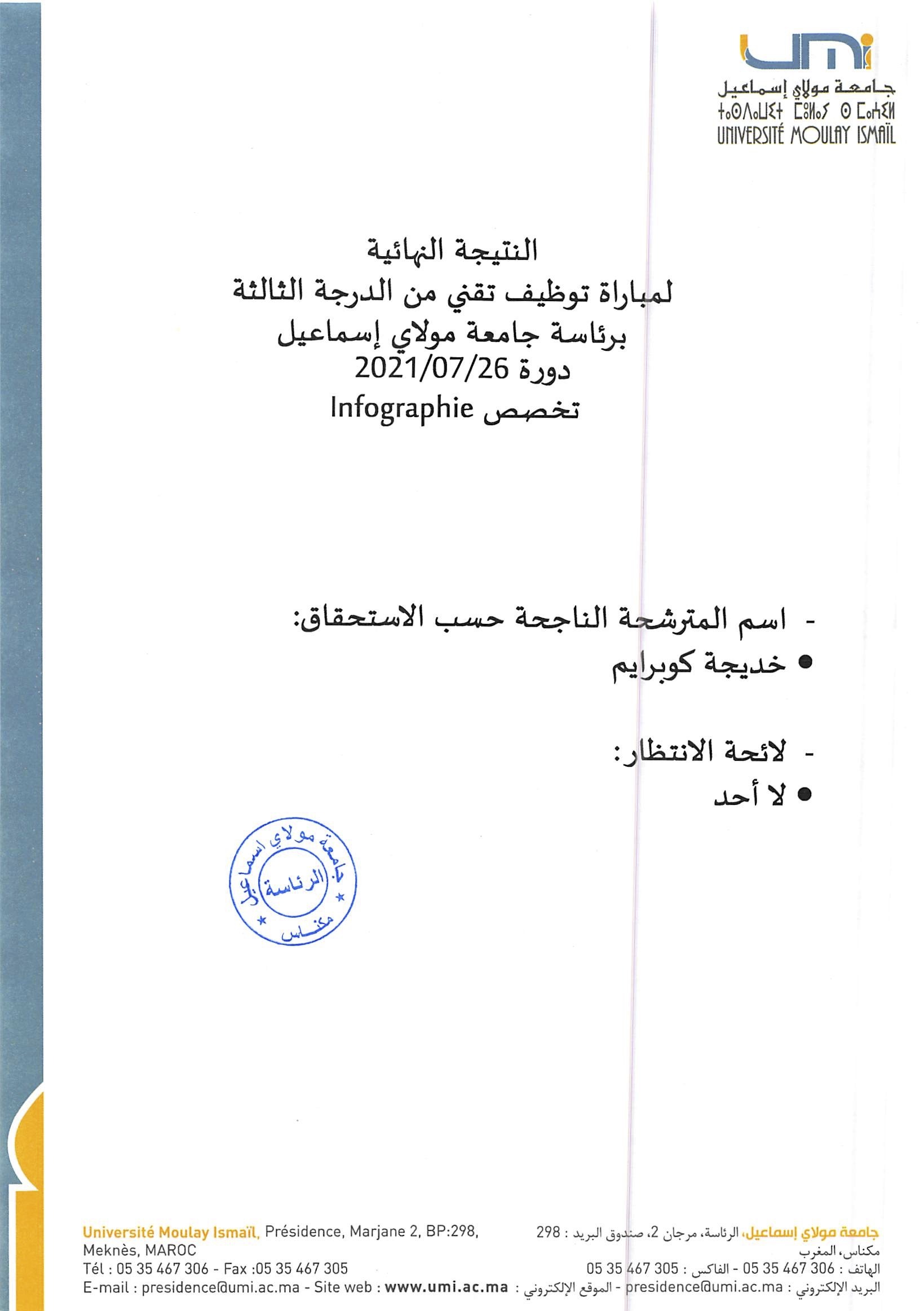 Vous devriez également aimer لوائح المترشحين المدعوين لاجتياز الاختبار الكتابي يوم الاحد 11 يونيو 2023 لمباريات توظيف تقنيين لفائدة كلية الطب والصيدلة بالرشيدية10 juin 2023 Listes des candidats convoqués le 01/08/2023 à l’examen écrit d’accès pour le grade de Technicien de 3ème grade poste de FMP et de la Présidence27 juillet 2023 مباريات توظيف أساتذة التعليم العالي مساعدين بالمدرسة العليا للتكنولوجيا – خنيفرة17 novembre 2016