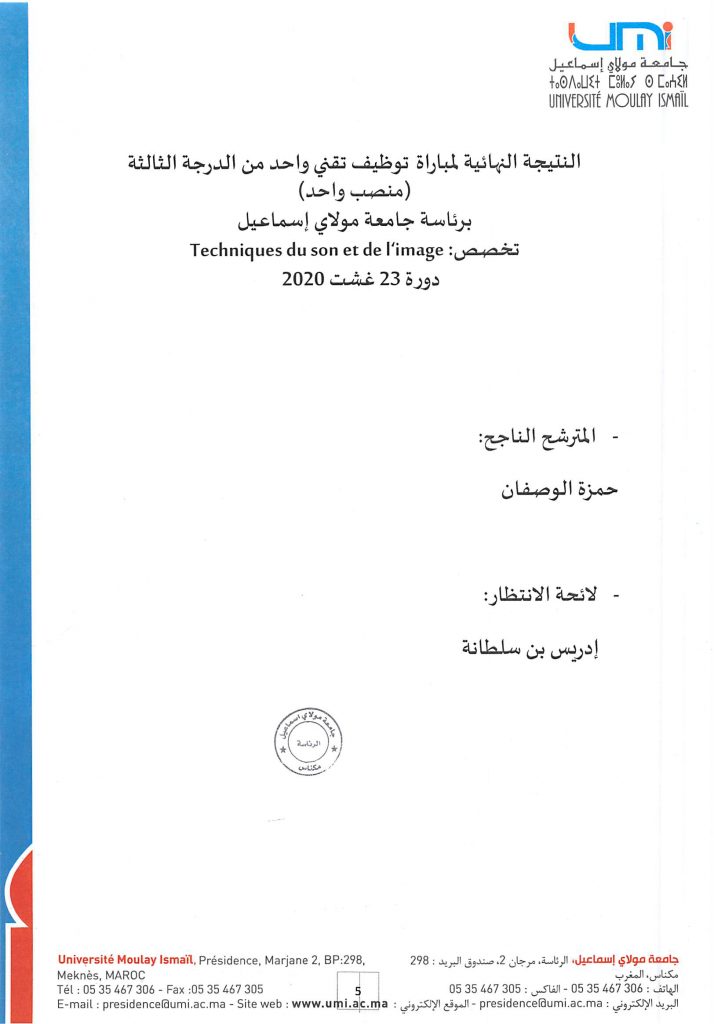 Vous devriez également aimer ندوة وطنية حول : »تقييم تنزيل الجهوية المتقدمة ـ جهة فاس ـ مكناس نموذجا25 mai 2021 Appel à Candidature pour Mobilité en Turquie (Université Pamukkale) 1ER Appel à Candidature24 mai 2021 إعلان عن فتح باب الترشيحات لشغل منصب عميـد أومدير مؤسسات تابعة للجامعة9 décembre 2013