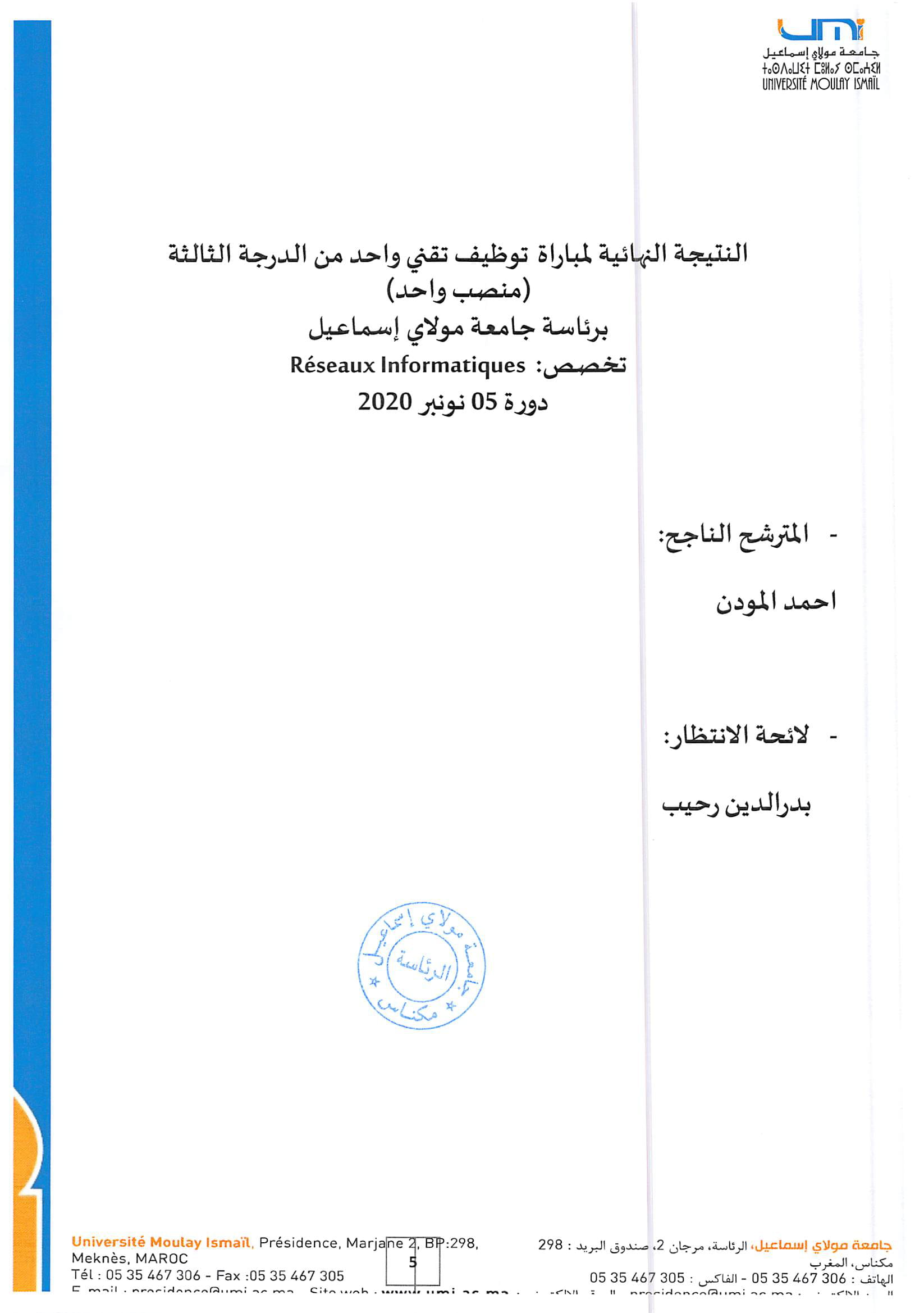 Liste des candidats admis pour le test oral du concours de recrutement d’un administrateur 2ème grade en Audit et Contrôle Interne17 novembre 2016