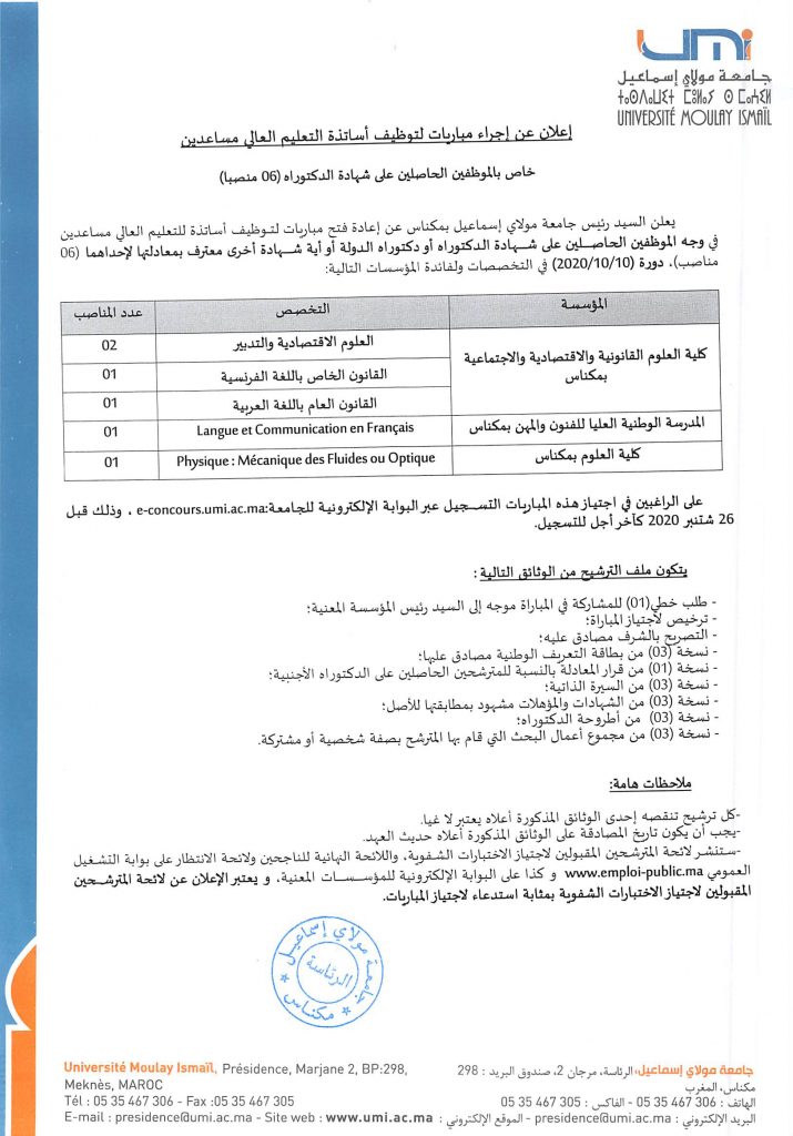 لائحة المترشحين المدعوين لاجتياز اختبار العرض و المناقضة لمباراة توظيف أستاذ محاضر تخصص : Droit public interne en langue française26 juillet 2024