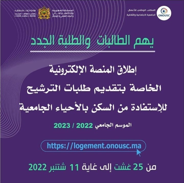 https://logement.onousc.ma Vous devriez également aimer Réunion du comité de pilotage RUMI à Meknès13 juillet 2016 Réunion de l’UMI avec ses partenaires socio-économiques16 mars 2015 Portugal : Bourses de mobilité Erasmus+ à l’Université de Porto (3ème Appel)5 juillet 2017
