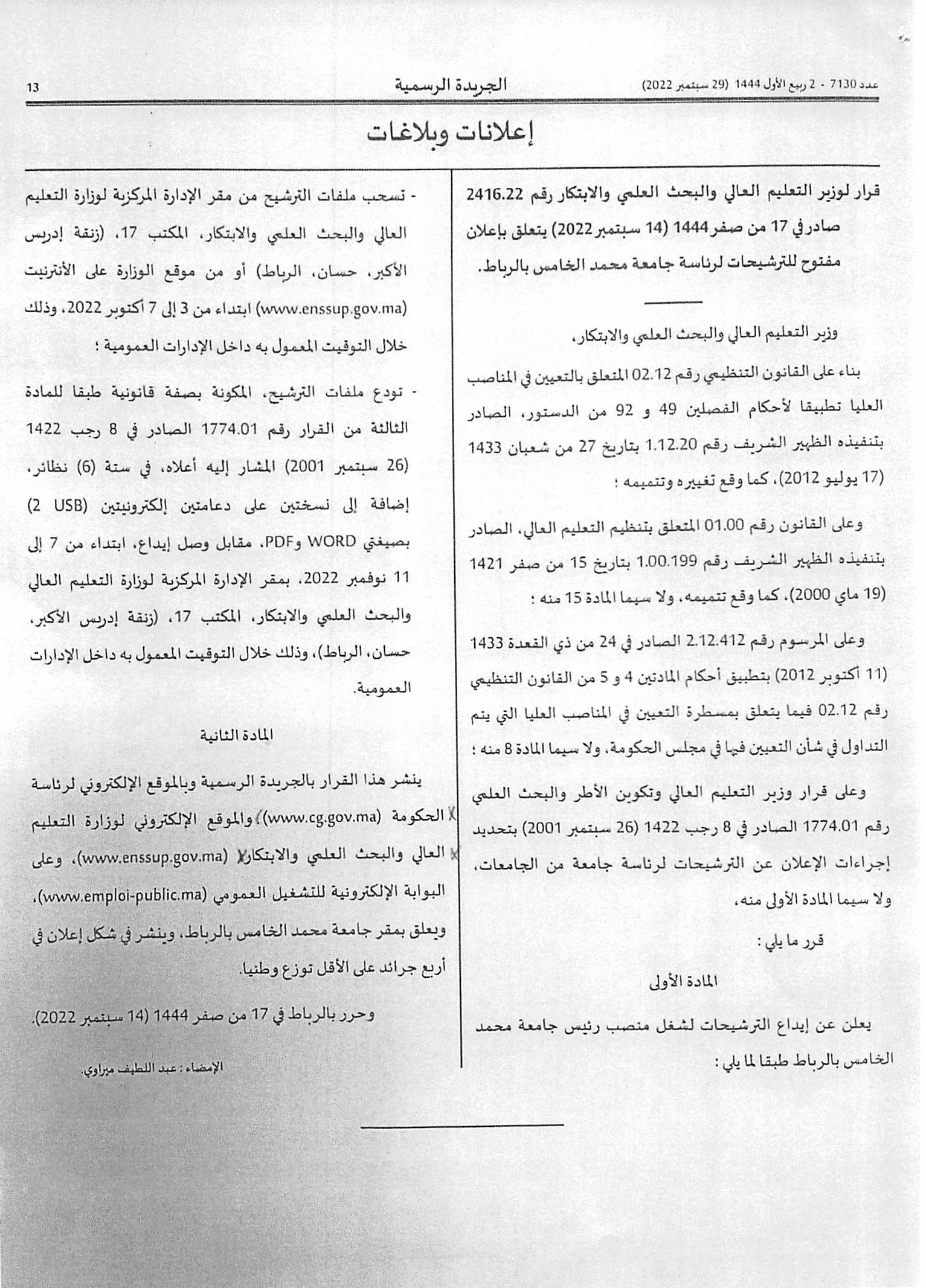 النتيجة النهائية لمباراة توظيف أستاذ محاضر تخصص: Français (Littérature/Littérature comparée)2 octobre 2024