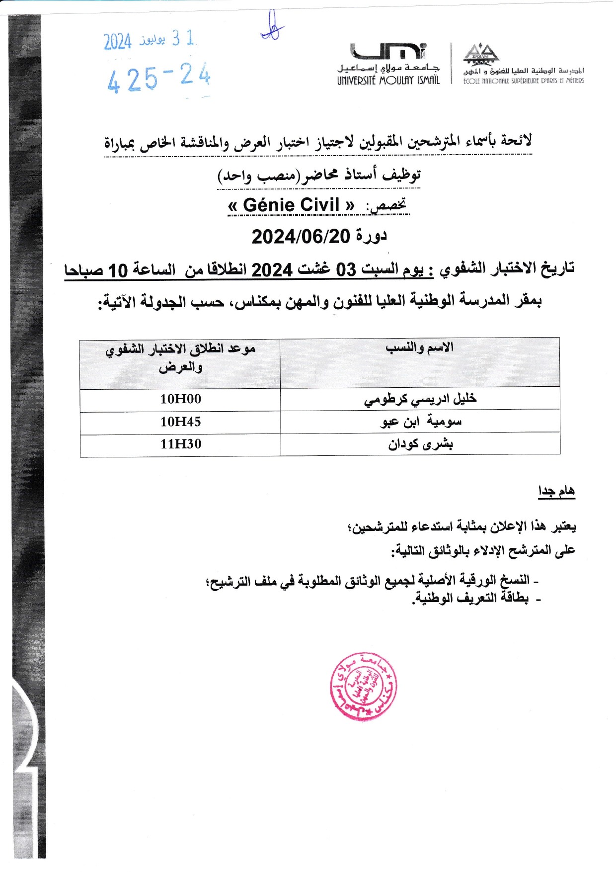 لائحة بأسماء المترشحين المقبولين لاجتياز اختبار العرض والمناقشة الخاص بمباراة توظيف أستاذ محاضر (منصب واحد) « Génie Civil » : تخصص Vous devriez également aimer Formation sur l’utilisation de Scopus, Science Direct et Mendeley20 octobre 2017 Table ronde sur : La convergence des politiques publiques territoriales19 décembre 2017 Rejoignez-nous sur notre page officielle sur Facebook11 juin 2014