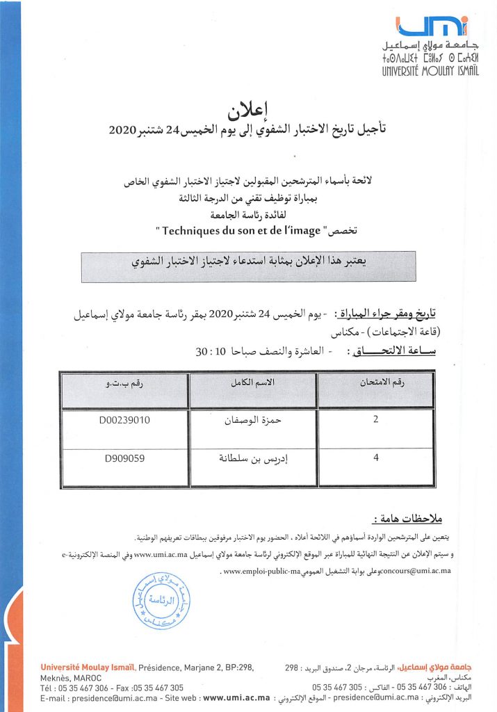 Vous devriez également aimer Tempus IV: Lancement du 6ème appel à proposition 201321 janvier 2013 الجدول 1 الجامعة الدولية لكرة المضرب، جامعة مولاي اسماعيل في مكناس، 12-13 و 14 مارس 20134 mars 2013 Cérémonie de signature des contrats des Projets de recherche UMI 201821 décembre 2018