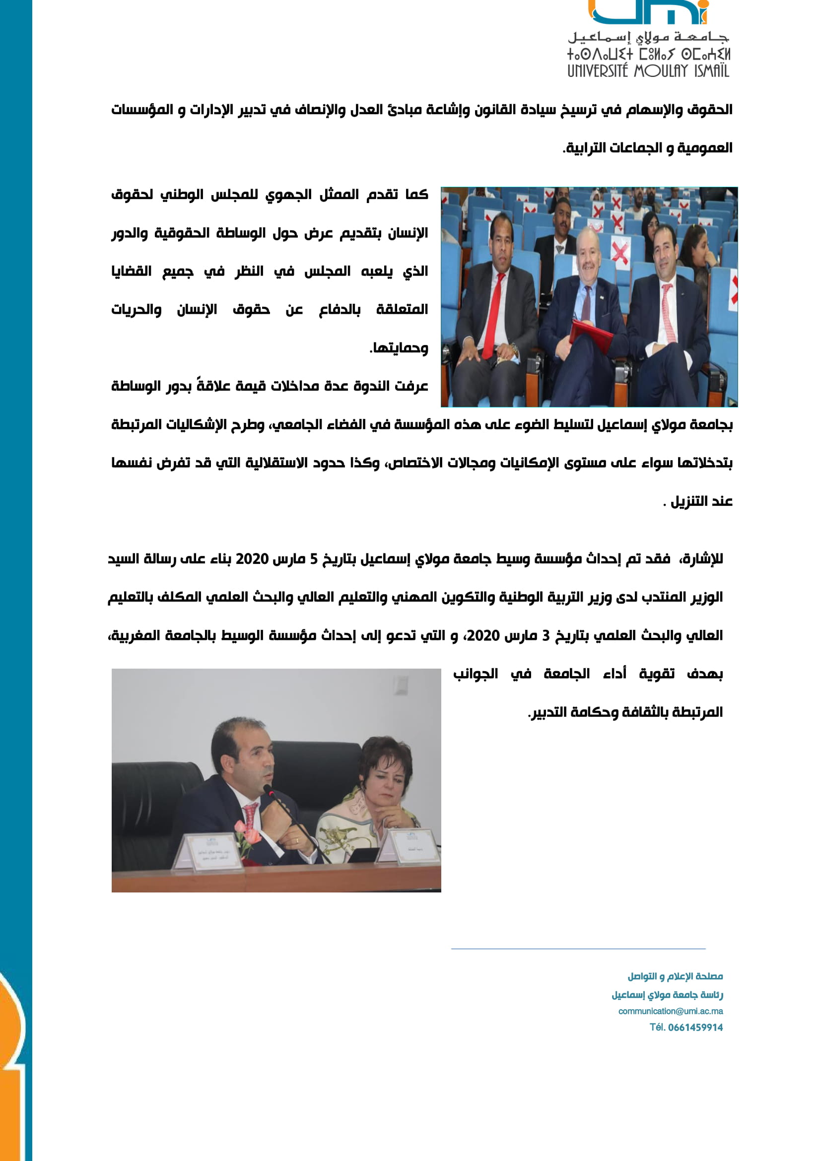 Vous devriez également aimer نظام التغطية الصحية الخاص بالطلبة7 mars 2016 بلاغ : جامعة مولاي اسماعيل تباشر التحضير لجلسات الإنصات والمشاورة8 mars 2022 Intelligence Artificielle : تخصص – FSJES – إعلان عن مباراة لتوظيف أستاذ محاضر- (إعادة فتح) 29 octobre 2024