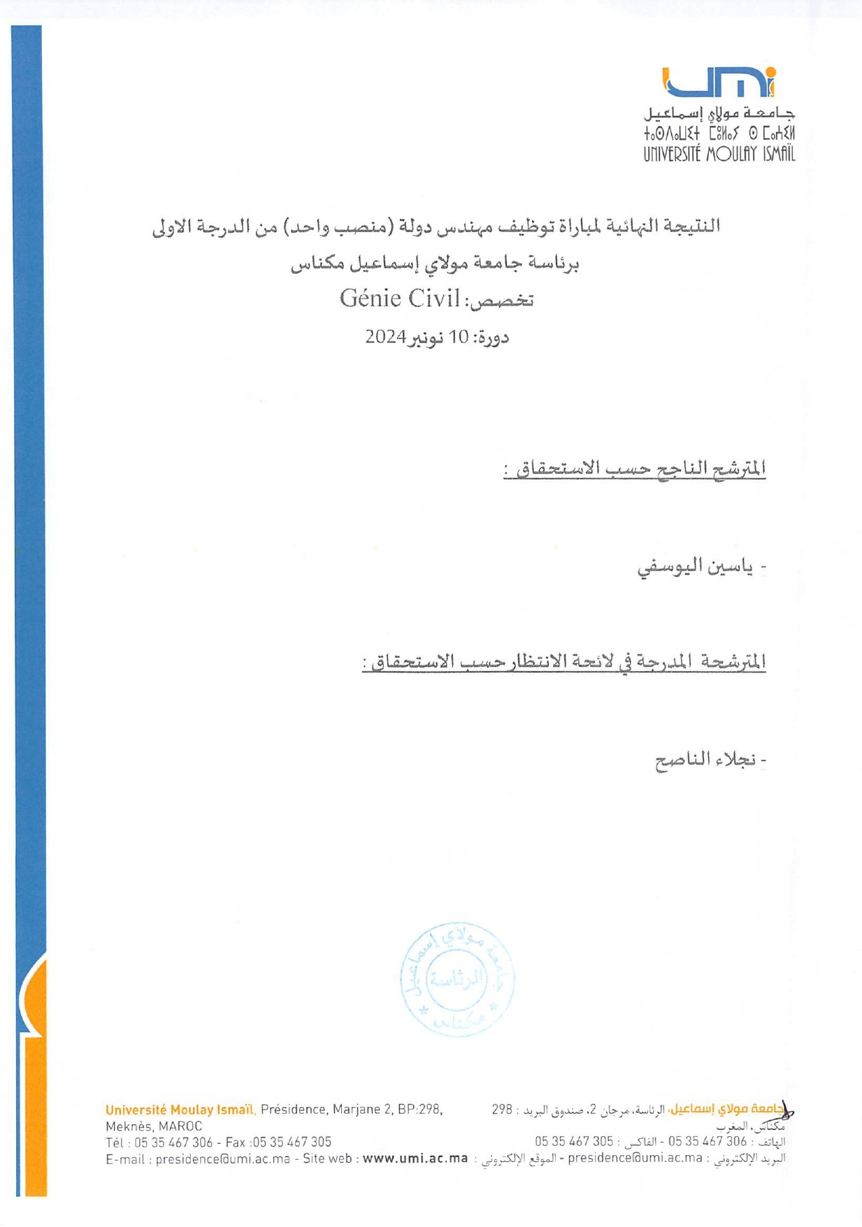 نتائج مباريات توظيف أطر إدارية وتقنية بجامعة مولاي اسماعيل دورة 10/11/2024 Vous devriez également aimer 1439 سنة هجرية سعيدة21 septembre 2017 مباراة توظيف أستاذ محاضر لفائدة المدرسة العليا للتكنولوجيا – مكناس – Comptabilité et Contrôle de Gestion : تخصص2 décembre 2024 Cahier des Normes Scientifiques et Pédagogiques Nationales du Cycle Doctoral28 juillet 2023
