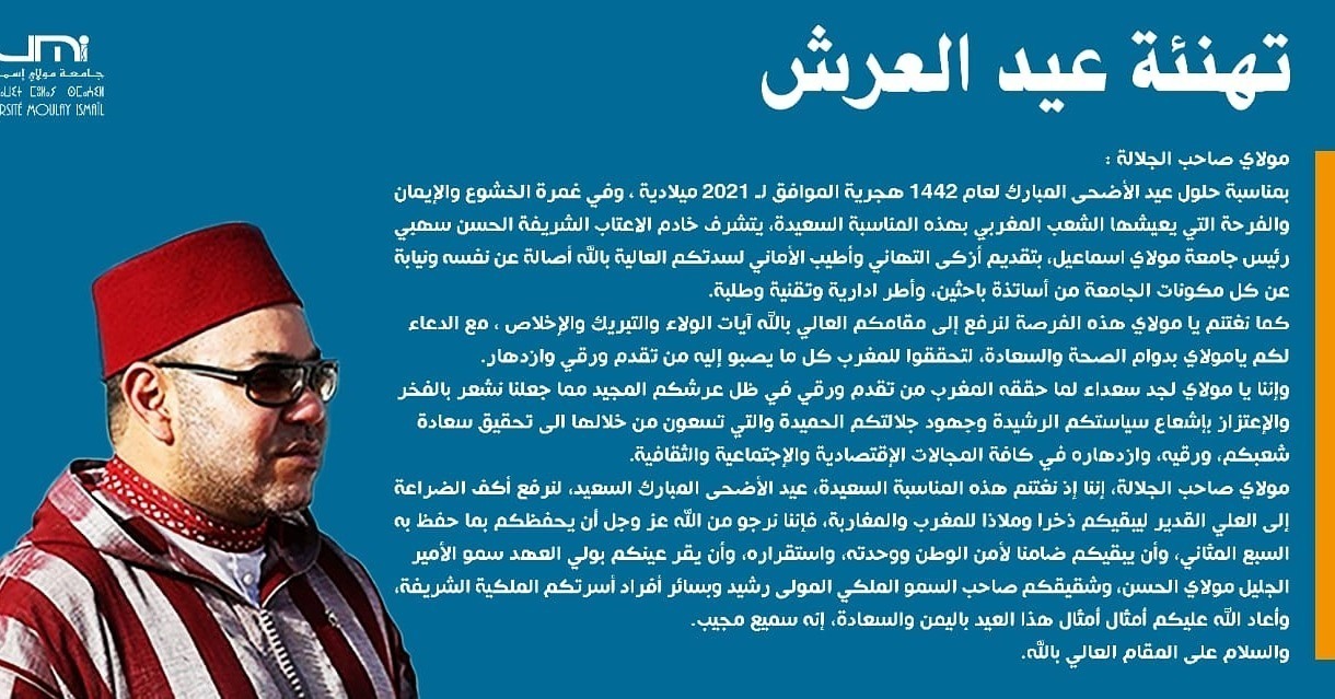 يحتفل الشعب المغربي بالذكرى ال22 لتربع صاحب الجلالة الملك محمد السادس نصره الله و أيده على عرش أسلافه المنعمين. دام له العز والنصر Vous devriez également aimer EST – إعلان عن مباراة لتوظيف أستاذ محاضر(إعادة فتح) – تخصص:الانجليزية29 octobre 2024 Appel à candidatures au Master conjoint Erasmus Mundus en études africaines8 février 2021 L’Université Dans Sa Cité avec Pr. Tariq RAMADAN13 juin 2012