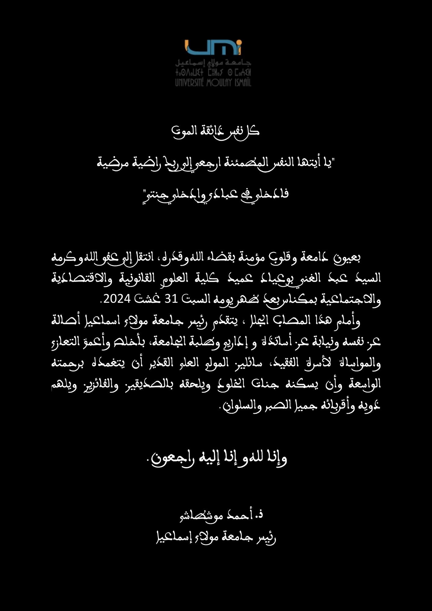 Vous devriez également aimer Journée Hollandaise à l’Université Moulay Ismail13 juin 2012 DUT à l’ESTK: Liste des candidats admis29 septembre 2014 إعلان عن نتيجة انتخاب ممثل الطلبة بمجلس الجامعة للفترة المتبقية من السنوات المدنية: 2023- 202417 janvier 2024