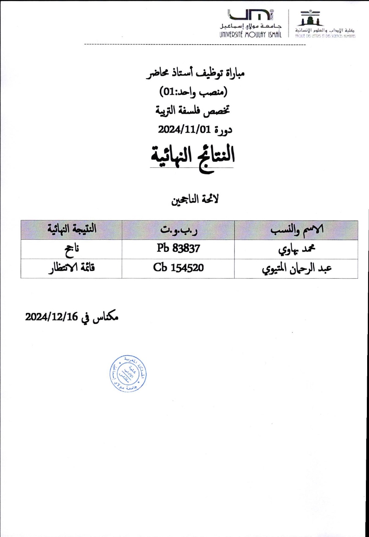 لائحة بأسماء المرشحين المقبولين لاجتياز الاختبار الشفوي الخاص بمباراة توظيف تقني من الدرجة الثالثة لفائدة رئاسة الجامعة تخصص Comptabilité11 septembre 2020