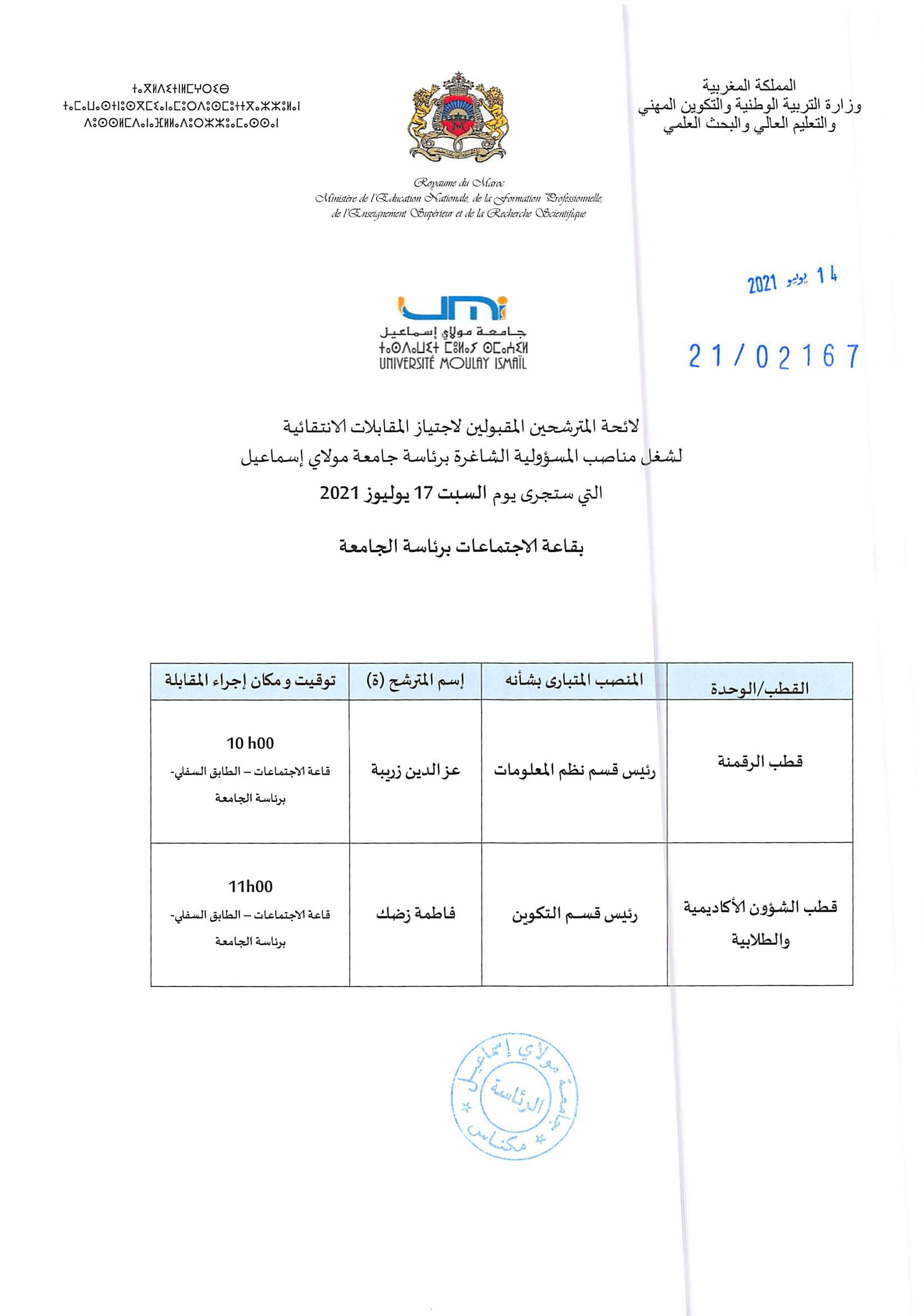 Vous devriez également aimer مذكرات وزارية بخصوص شروط وإجراءات الترشح لولوج المدارس العليا للجامعات المغربية المفتوحة في وجه حاملي بكالوريا التعليم الثانوي برسم الموسم الجامعي 2022-202326 juin 2023 Démarrage des cours à l’EST Khénifra27 octobre 2014 Prix Hassan II pour l’Environnement14 avril 2015