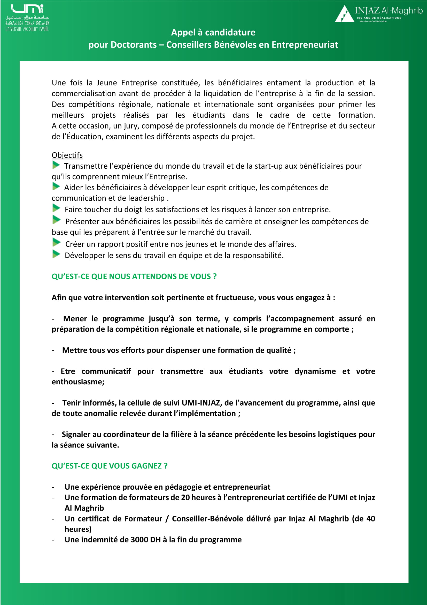 Pour une bonne diffusion auprès des doctorants de l’appel à candidature ci-dessous, Nous vous informons queLe 5 Février 2021 est la nouvelle date limite pour les candidatures. Vous devriez également aimer توقيع اتفاقية شراكة29 janvier 2020 AVIS Candidats au Cycle Doctoral 2024-202510 octobre 2024 إعلان عن فتح باب الترشيحات لولوج إطار أساتذة التعليم العالي (دورة أكتوبر ـ دجنبر 2017)10 octobre 2017