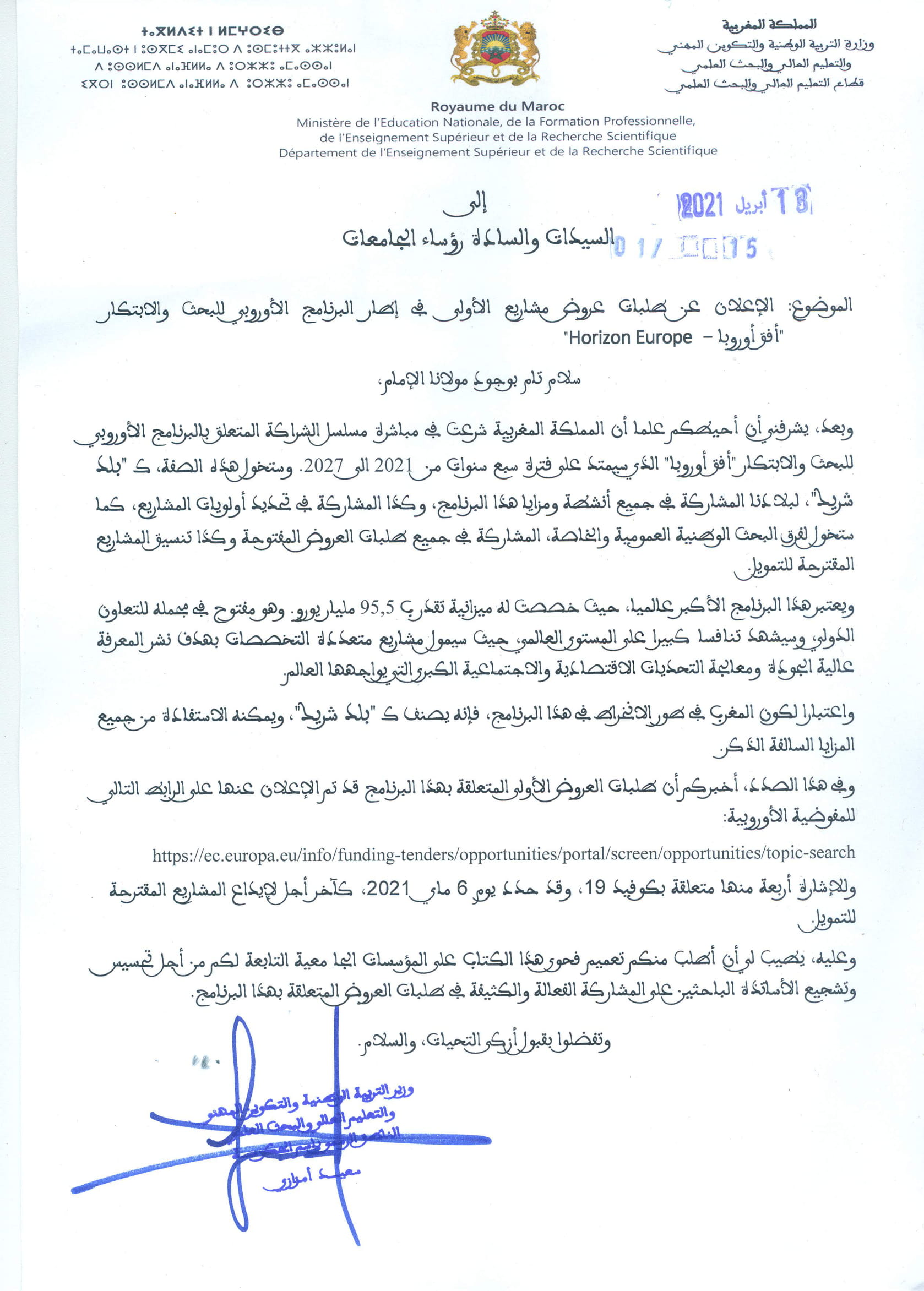 Vous devriez également aimer Maroc- Croatie / Programme d’études supérieures spécialisé en Automobile et en Communication « Autocom »11 juillet 2019 Nouvelles Filières Accréditées à l’UMI (Session 2018)31 mai 2018 Plateforme de la mobilité internationale des enseignants chercheurs de l’UMI24 février 2022