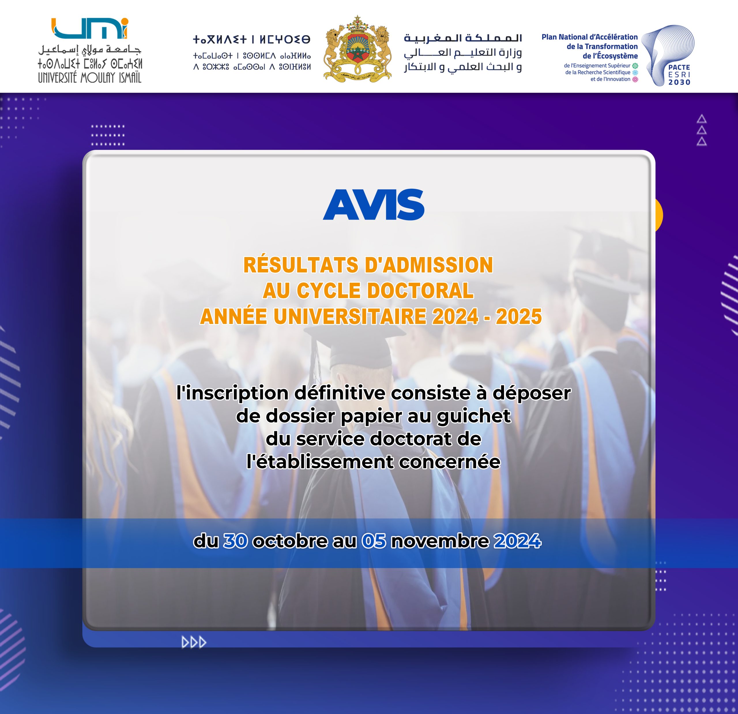 AVIS – Résultats d’admission au cycle doctoral année universitaire 2024 – 2025
