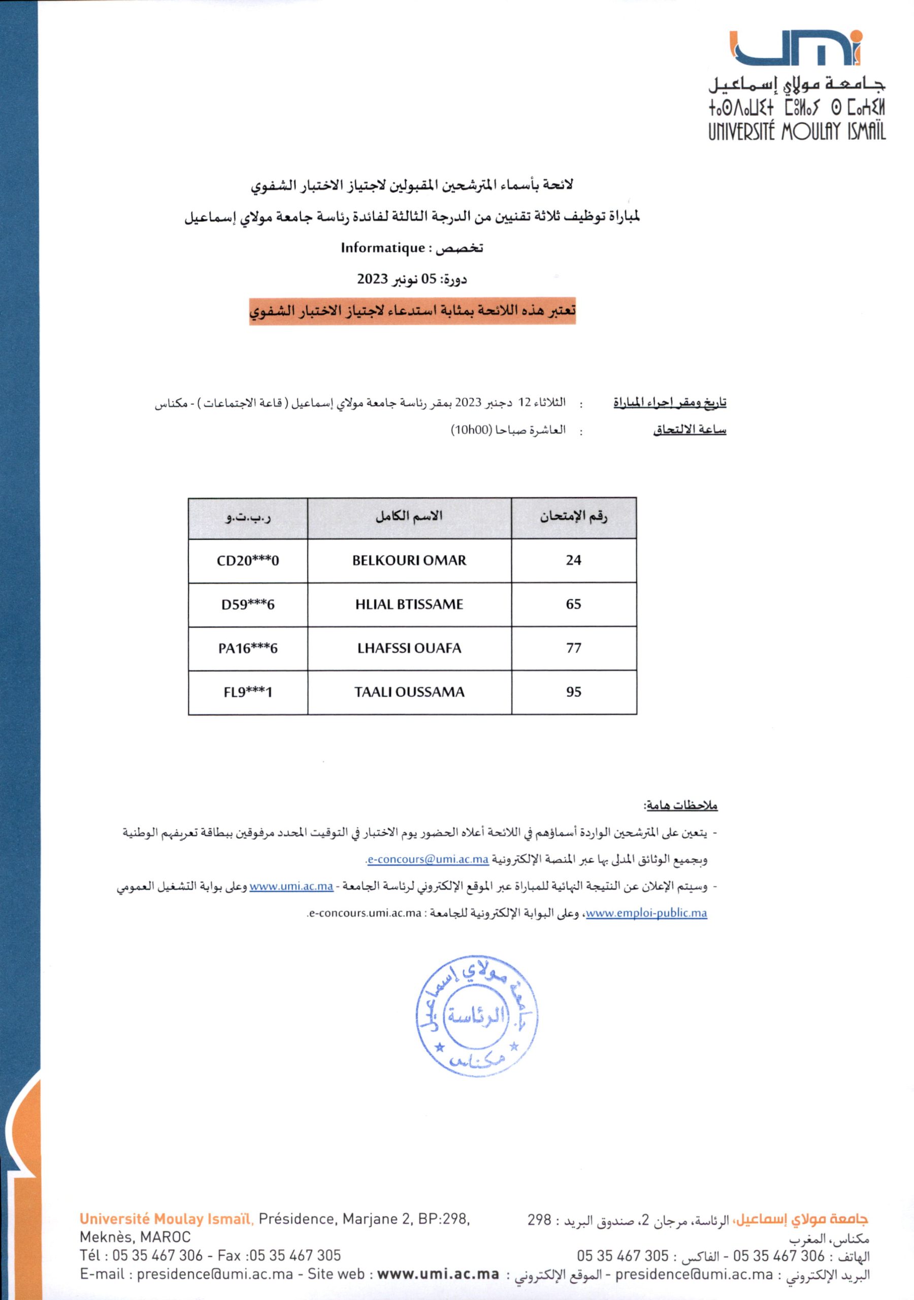 Vous devriez également aimer فتح باب الترشيح لشغل منصب مدير التعاون والشراكة بوزارة التعليم العالي و البحث العلمي و الابتكار29 mars 2022 Pr. Sahbi, nommé président de l’UMI.18 février 2019 « اللقاء الموسع الأول حول: « نظام البكالوريوس20 février 2020