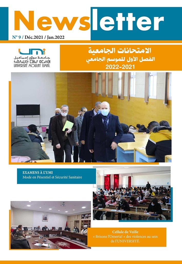 le N° (9) du journal « Newsletter« de l’UMI dont la thématique principale est relative aux Examens Universitaires 2021-2022 – 1ère session- » à l’Université Moulay Ismail-Meknès.