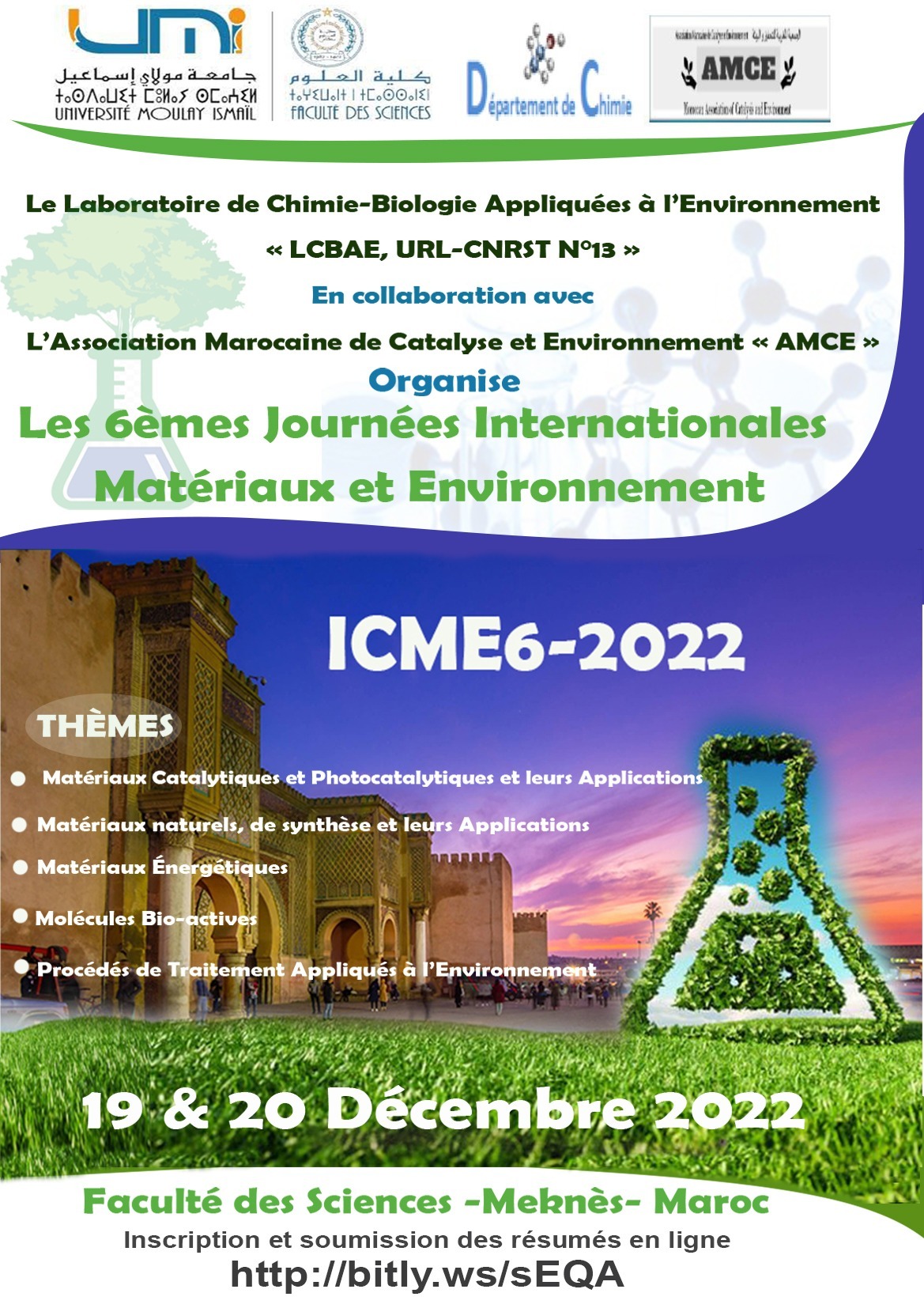Organisation de la 6ème édition des Journées Internationales Matériaux et Environnement JIME6’2022