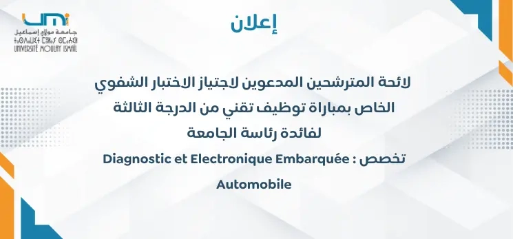 لائحة المترشحين المدعوين لاجتياز الاختبار الشفويالخاص بمباراة توظيف تقني من الدرجة الثالثةلفائدة رئاسة الجامعةتخصص : Diagnostic et Electronique Embarquée Automobile
