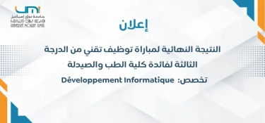 النتيجة النهائية لمباراة توظيف تقني من الدرجة الثالثة لفائدة كلية الطب والصيدلة Développement Informatique :تخصص