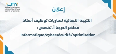 : النتيجة النهائية لمباريات توظيف أستاذ محاضر الدرجة أ، تخصص Informatique/cybersécurité/optimisation