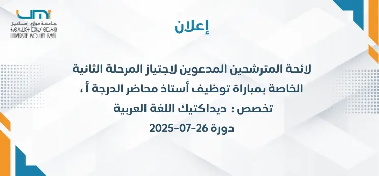 لائحة المترشحين المدعوين لاجتياز المرحلة الثانية الخاصة بمباراة توظيف أستاذ محاضر الدرجة أ ، تخصص : ديداكتيك اللغة العربية