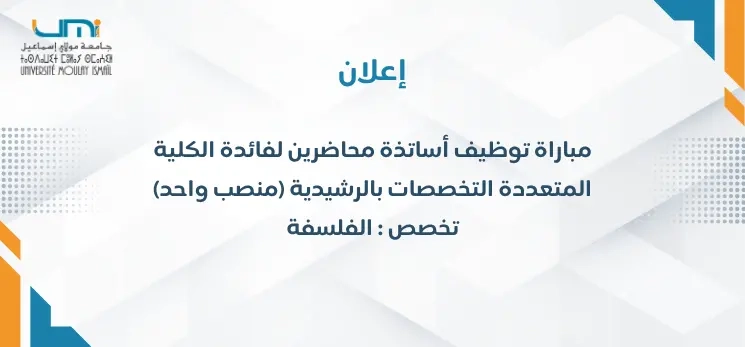 مباراة لتوظيف أستاذ محاضر (منصب واحد) لفائدة الكلية متعددة التخصصات بالرشيدية، تخصص الفلسفة