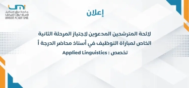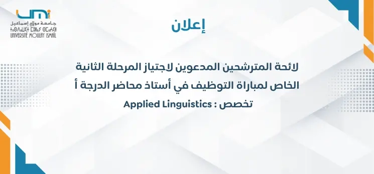 لائحة المترشحين المدعوين لاجتياز المرحلة الثانية الخاص لمباراة التوظيف في أستاذ محاضر الدرجة أ تخصص Applied Linguistics