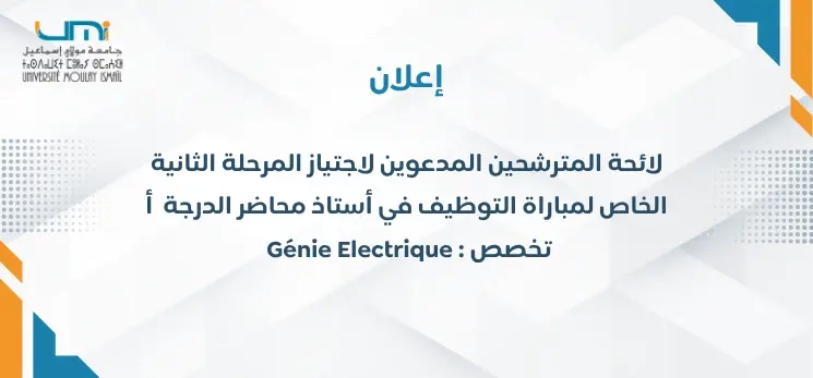 لائحة المترشحين المدعوين لاجتياز المرحلة الثانية الخاص لمباراة التوظيف في أستاذ محاضر الدرجة أ تخصص : Génie Electrique