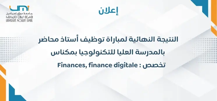 إعلان النتيجة النهائية لمباراة توظيف أستاذ محاضر بالمدرسة العليا للتكنولوجيا بمكناس تخصص : Finances، finance digitale