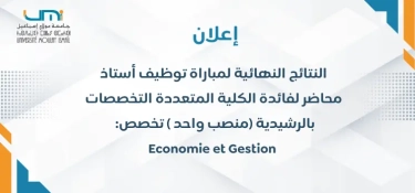 النتائج النهائية لمباراة توظيف أستاذ محاضر لفائدة الكلية المتعددة Economie et Gestion : التخصصات بالرشيدية (منصب واحد )  تخصص
