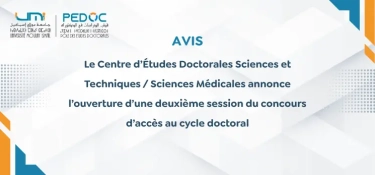 Le Centre d’Études Doctorales Sciences et Techniques / Sciences Médicales annonce l’ouverture d’une deuxième session du concours d’accès au cycle doctoral