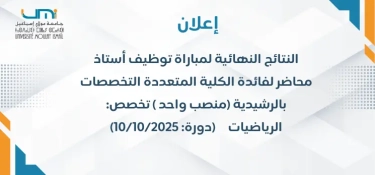 النتائج النهائية لمباراة توظيف أستاذ محاضر لفائدة الكلية المتعددة التخصصات بالرشيديةمنصب واحد تخصص: الرياضيات (دورة: 10/10/2025)