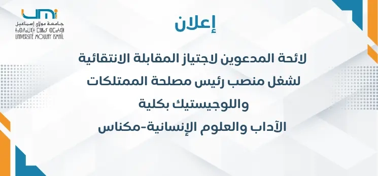 لائحة المدعوين لاجتياز المقابلة الانتقائية لشغل منصب رئيس مصلحة الممتلكات واللوجيستيك بكلية الآداب والعلوم الإنسانية-مكناس