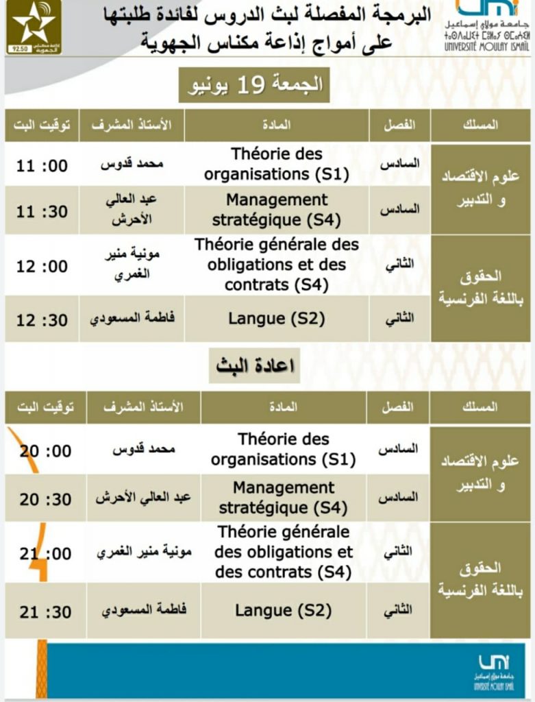 Vous devriez également aimer منح جهة فاس مكناس الخاصة بالتداريب12 octobre 2017 Résultat des élections des membre du Conseil d’Université : Staff administratif et technique22 décembre 2017 Conférence « GENDER & EDUCATION AMID COVID-19.IMPACTS, REPONSES,AND PROSPECTS »31 mars 2021