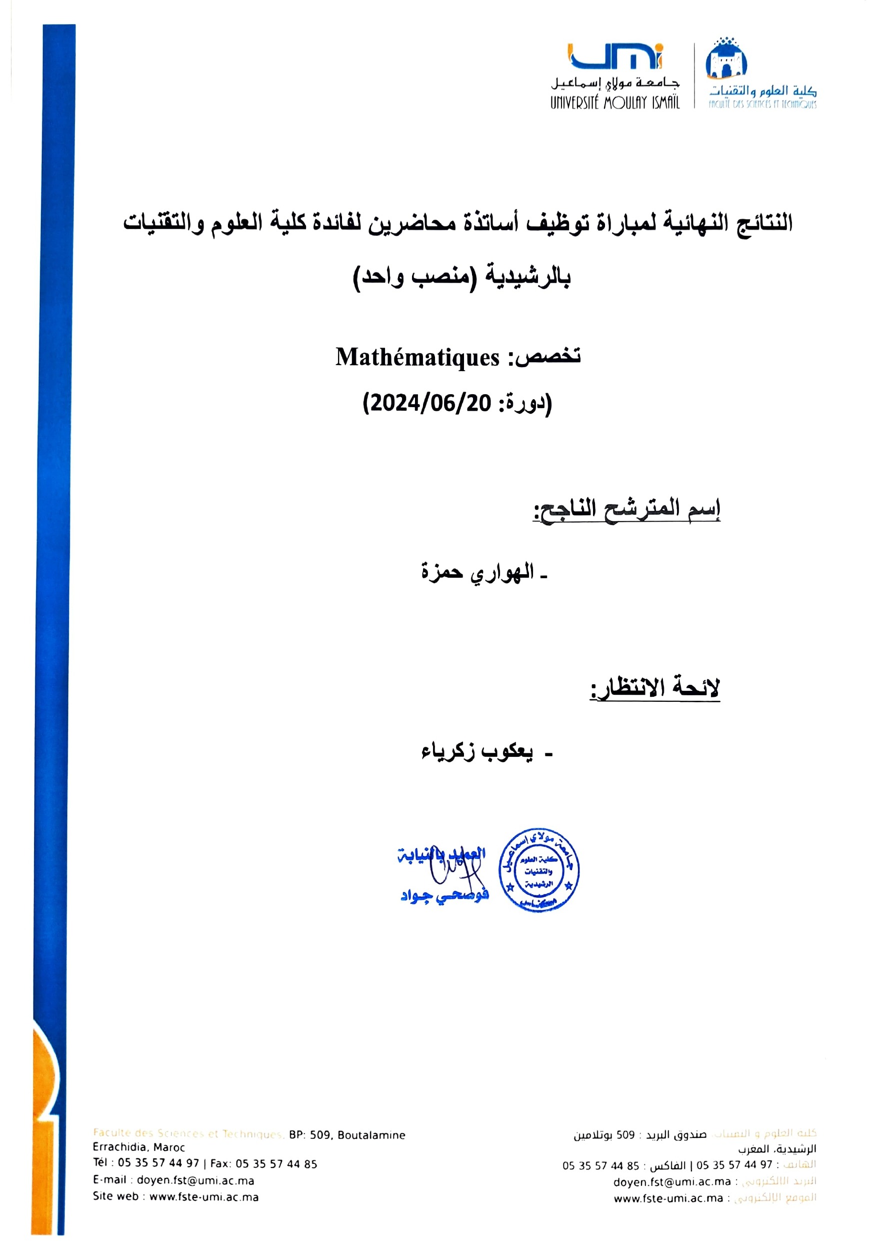 Résultats finaux pour le concours de 3 MC ( Chimie physique , Mathématiques , Génie Biologie ) à FST Vous devriez également aimer Appel à Candidature pour Mobilité en Italie (Université Ca’Foscari – Venise)19 janvier 2023 Etudes doctorales en sciences d’ingénierie : Appel à candidature28 septembre 2017 Résultats provisoires – Programme de requalification de 25000 licenciés21 décembre 2015